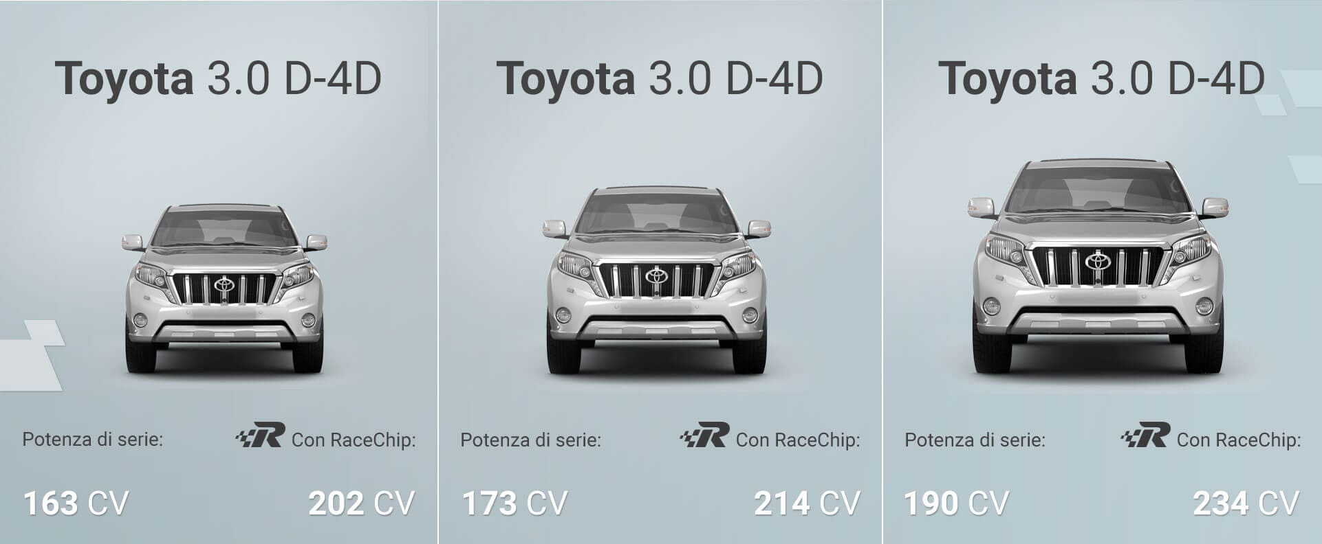 Più potenza, maggiore coppia, ripresa superiore, accelerazione più vigorosa e una risposta del motore più agile: con il chip tuning RaceChip, la tua auto ti entusiasmerà con una miriade di nuove qualità.